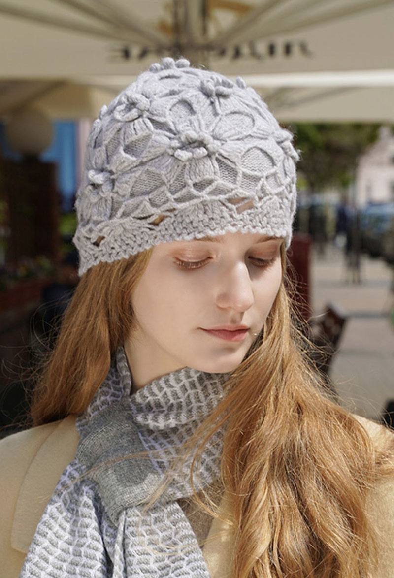 Double Layer Hand Knit Flower Cashmere Beanie